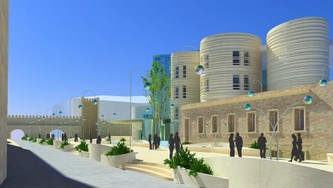 Dall’idea di un concept nasce questa elaborazione di un hotel calato nella realtà del centro storico di Baku. Le torri che contengono le camere e le suite sono ispirate alla bellissima Maiden Tower vicina all’area prescelta, ma il richiamo alla storia è in realtà duplice perchè le moderne torri dialogano anche con le antiche torri di guardia delle vecchie mura che abbracciano l’hotel che può essere letto come una sorta di moderno castello costruito in pietra e vetro.